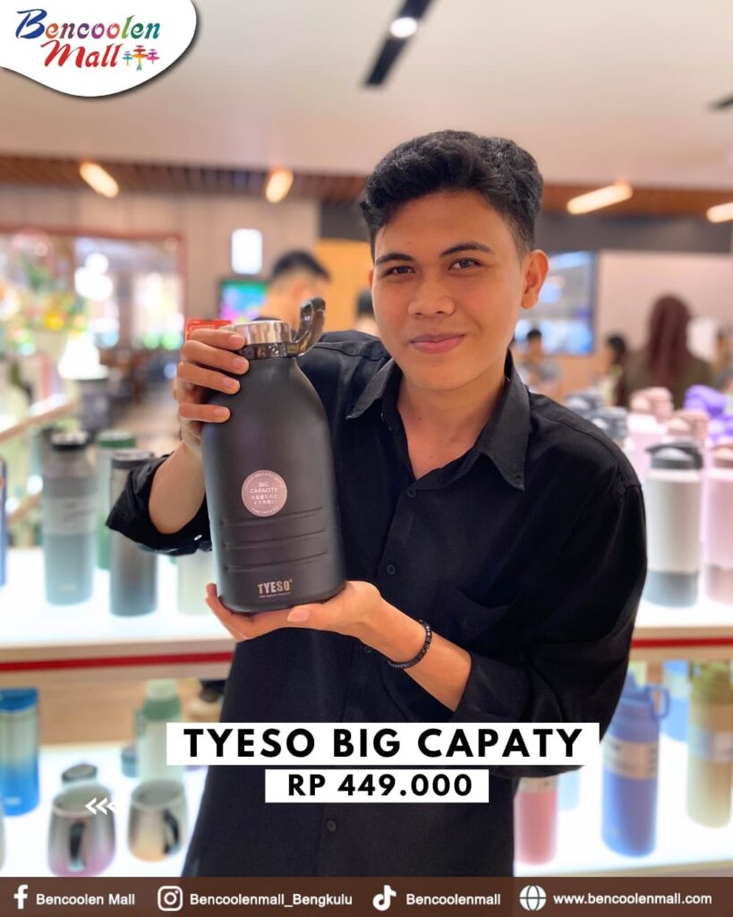 Untuk kamu yang butuh hidrasi maksimal, Tyeso Big Capacity adalah jawabannya! Dengan ukuran besar dan daya tahan tinggi, tumbler ini sangat ideal dibawa saat olahraga, hiking, atau road trip panjang.