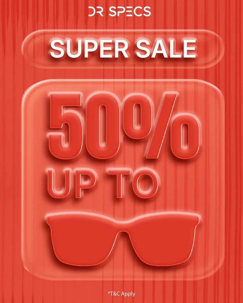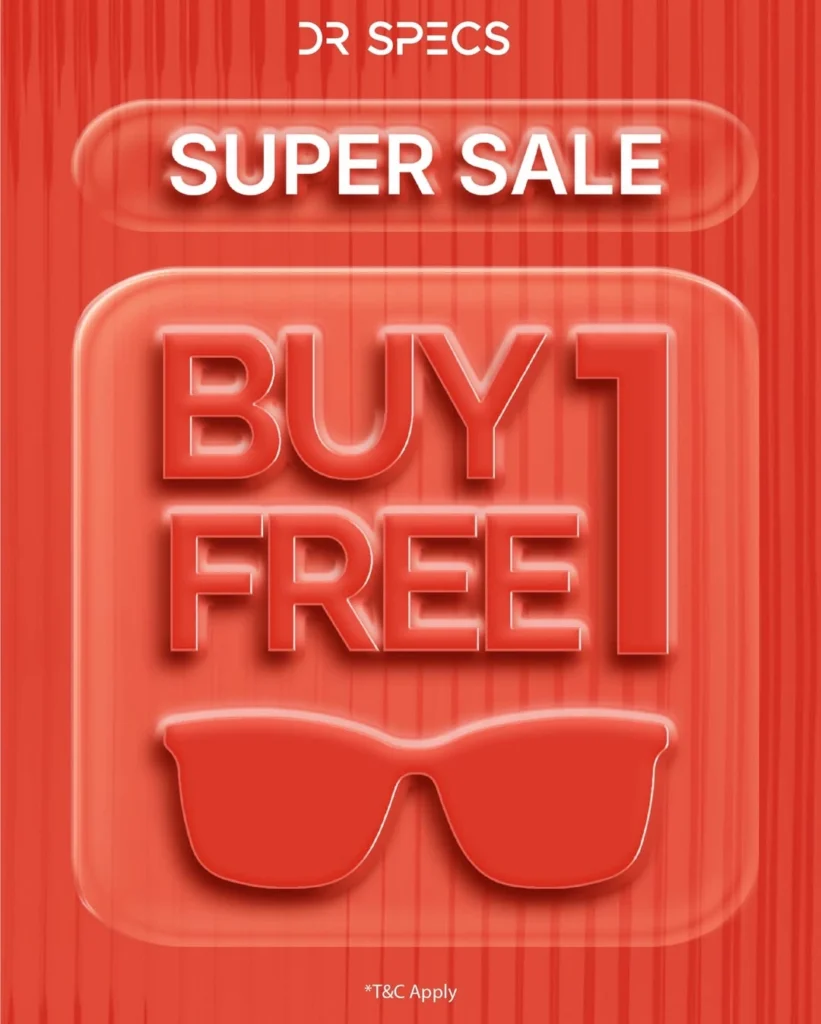 Kini saat yang tepat untuk mendapatkan solusi terbaik melalui diskon kacamata di DR. SPECS Bencoolen Mall. Nikmati Promo Super Sale dengan diskon hingga 50% serta penawaran Buy 1 Get 1 yang memberikan nilai lebih untuk setiap pembelian. Koleksi kacamata yang tersedia hadir dengan desain modern, material berkualitas, dan pilihan lensa yang nyaman untuk menunjang aktivitas harian sekaligus menyempurnakan gaya Anda.