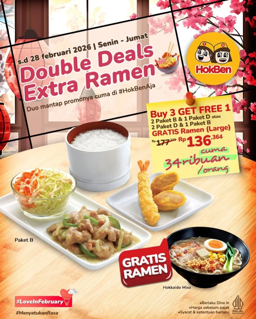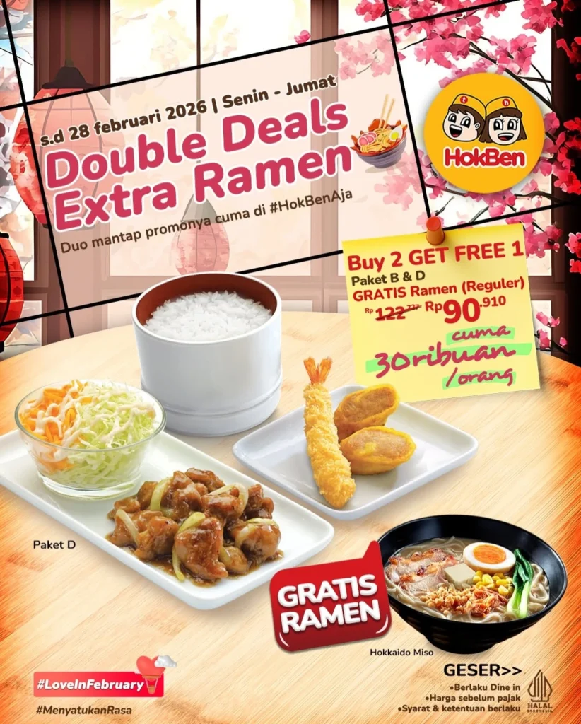 Kini HokBen Bencoolen Mall menghadirkan solusi terbaik melalui Promo Double Deals Extra Ramen. Menu ini menawarkan ramen hangat dengan porsi lebih besar, dipadukan dengan menu favorit HokBen yang lezat dan mengenyangkan. Promo ini sangat cocok untuk keluarga, pasangan, hingga teman kerja yang ingin menikmati ramen HokBen berkualitas dengan harga hemat. Kunjungi langsung HokBen di Bencoolen Mall Bengkulu, dan rasakan pengalaman makan ala restoran Jepang yang praktis, nyaman, dan ramah untuk semua usia.