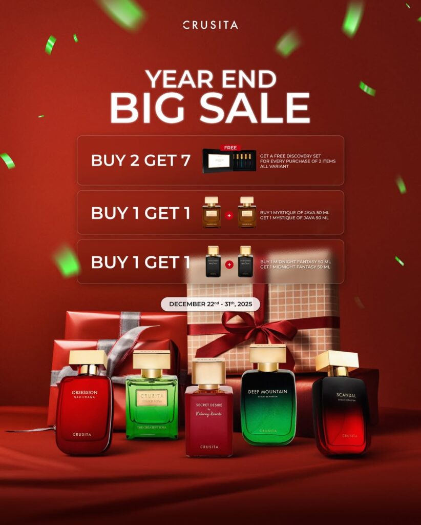 Datang langsung ke CRUSITA Bencoolen Mall, dan jadikan akhir tahun Anda lebih berkesan dengan aroma yang memikat dan tak terlupakan.