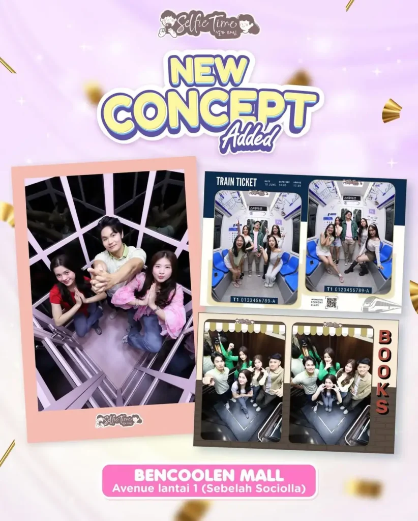 Selfie Time kini menjadi destinasi favorit bagi pecinta foto aesthetic di kota ini. Dengan konsep kekinian dan berbagai spot unik, Selfie Time menghadirkan pengalaman berfoto yang seru dan instagramable untuk semua kalangan. Terletak di Bencoolen Mall, tempat ini menawarkan berbagai tema menarik seperti ruang pink romantic, konsep kereta modern, hingga area colorful yang siap mempercantik feed media sosial kamu.