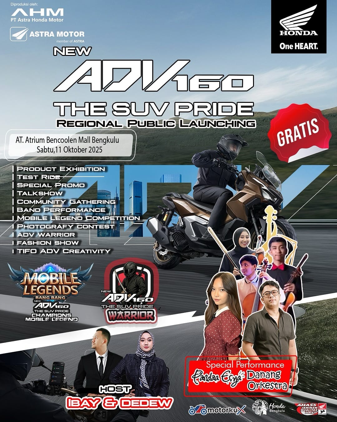 Events Launching Honda ADV 160 Meriah di Bencoolen Mall: Ada Servis Gratis, Turnamen Mobile Legends, dan ADV Warrior! 9 October 2025